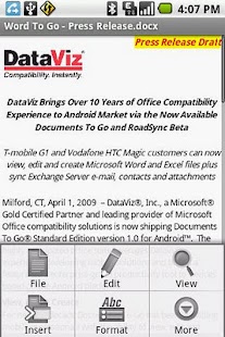Docs To Go, now in its 14th year, is developed by DataViz, Inc., a producer of quality software for Windows & Mac for over 29 years. In addition to the Android platform, Documents To Go is also currently available for iPhone, Blackberry & Symbian S60