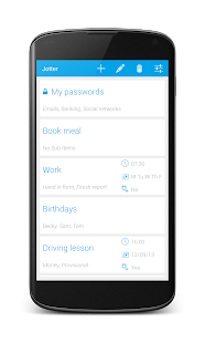 Jotter is a beautifully designed note keeper that follows Androids holo theming. Jotter has designed to be clean, attractive and purposeful, with crisp fonts, gentle and flat colours that do not dominate the notes but give it a unique twist. Using a “card layout” for each note, Jotter makes your notes easy to find by allowing you add sub notes up to infinite level, meaning you can organise notes in categories to your personal preference. By using a quickly accessible navigation drawer, you can quickly see with a glance the next upcoming things to complete without having to search through notes to find them.